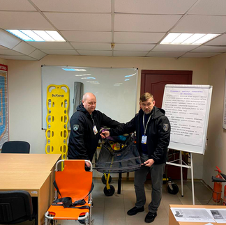 Крім того наші волонтери продемонстрували працівникам Укрзалізниці безпечні способи переміщення вручну хворих з різними ушкодженнями, які можуть виконати двоє чи навіть одна людина.